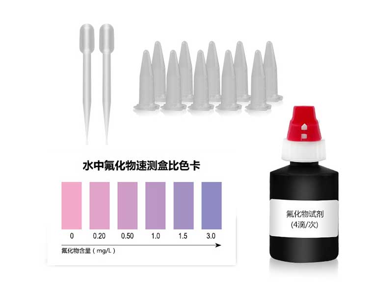 水中氟化物與檢測試劑反應(yīng)生成藍(lán)色物質(zhì),含量越高溶液越偏藍(lán)色。