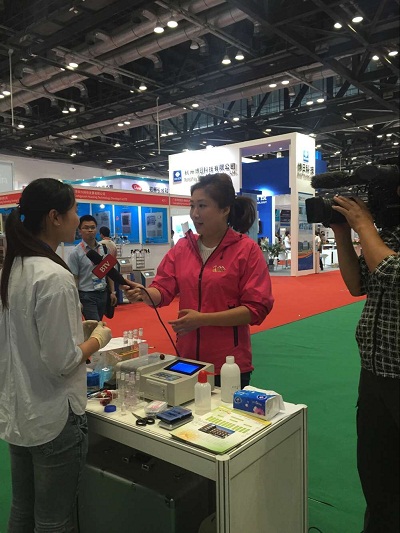 北京電視臺的記者被智云達(dá)展位前擁擠的人群吸引過來,對公司及儀器很感興趣,并對技術(shù)人員進(jìn)行現(xiàn)場采訪。北京智云達(dá)由一支以食品安全檢測、化學(xué)分析、計算機(jī)軟硬件以及光學(xué)儀器開發(fā)為主的博士、碩士為核心的高科技人才隊伍組成?,F(xiàn)已研發(fā)出六大系列食品安全快速檢測產(chǎn)品,取得了多項發(fā)明專利,公司長期關(guān)注食品安全問題。