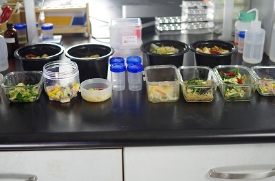 6組樣品分別是宮保雞丁,蠔油生菜,沙拉,菠菜炒雞蛋,蝦皮小白菜炒粉絲,土豆絲的隔夜菜以及所對應(yīng)的新炒菜。