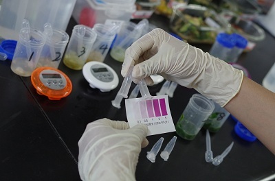 北京智云達技術(shù)工程師楊老師和趙老師將準備好的樣品分別進行標(biāo)號,通過智云達自主研發(fā)生產(chǎn)的快速檢測產(chǎn)品:亞硝酸鹽速測管,對樣品進行快速檢測試驗。