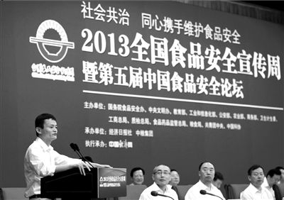 大自然保護(hù)協(xié)會(huì)中國主席馬云在全國食品安全宣傳周啟動(dòng)儀式上致辭。