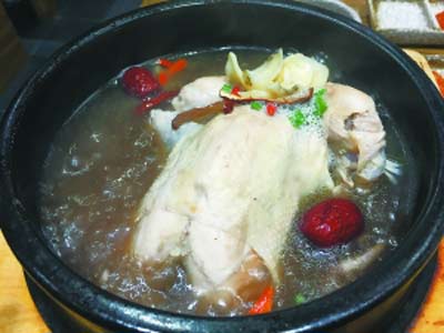 天氣變冷,喝碗熱乎乎的雞湯暖胃又暖心。這兩年流行的參雞湯是源自韓國的特色名湯,用整只雞制作,雞肚子里填滿糯米以及大棗、板栗、枸杞、高麗參等配料,清爽美味又滋補(bǔ)營養(yǎng)。本期,北京商報(bào)記者來到兩家連鎖參雞湯品牌——輝佐參雞湯和鮮有基參雞湯,體驗(yàn)藥膳美食的獨(dú)特滋味。調(diào)查發(fā)現(xiàn),鮮有基參雞湯的糯米口感硬且沒有入味,在火候掌握上有待提升。