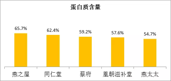 檢測(cè)結(jié)果顯示,五品牌燕窩蛋白質(zhì)含量均在50%以上。