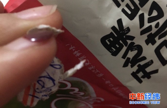 消費(fèi)者徐麗(化名)告訴中新經(jīng)緯客戶端,自己3月4日在唯品會上購買了一些三只松鼠的開心果,沒曾想竟在里面吃出了一塊爛掉的標(biāo)簽。