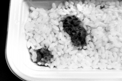 3日下午6點(diǎn),該列車剛開出長沙站,11號車廂內(nèi)有11位乘客購買了35元一份的紅燒牛肉盒飯。一位姓胡的乘客發(fā)現(xiàn)盒飯有兩處明顯的霉斑。但是盒飯的包裝是2013年10月10日,還有"常溫下貯存,保質(zhì)期90天"的字樣。