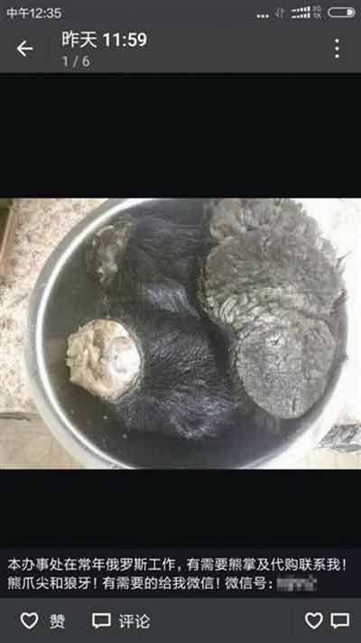 本文關(guān)鍵詞:微信朋友圈公然叫賣(mài)熊掌980元一斤 自稱有專門(mén)渠道“代購(gòu)”