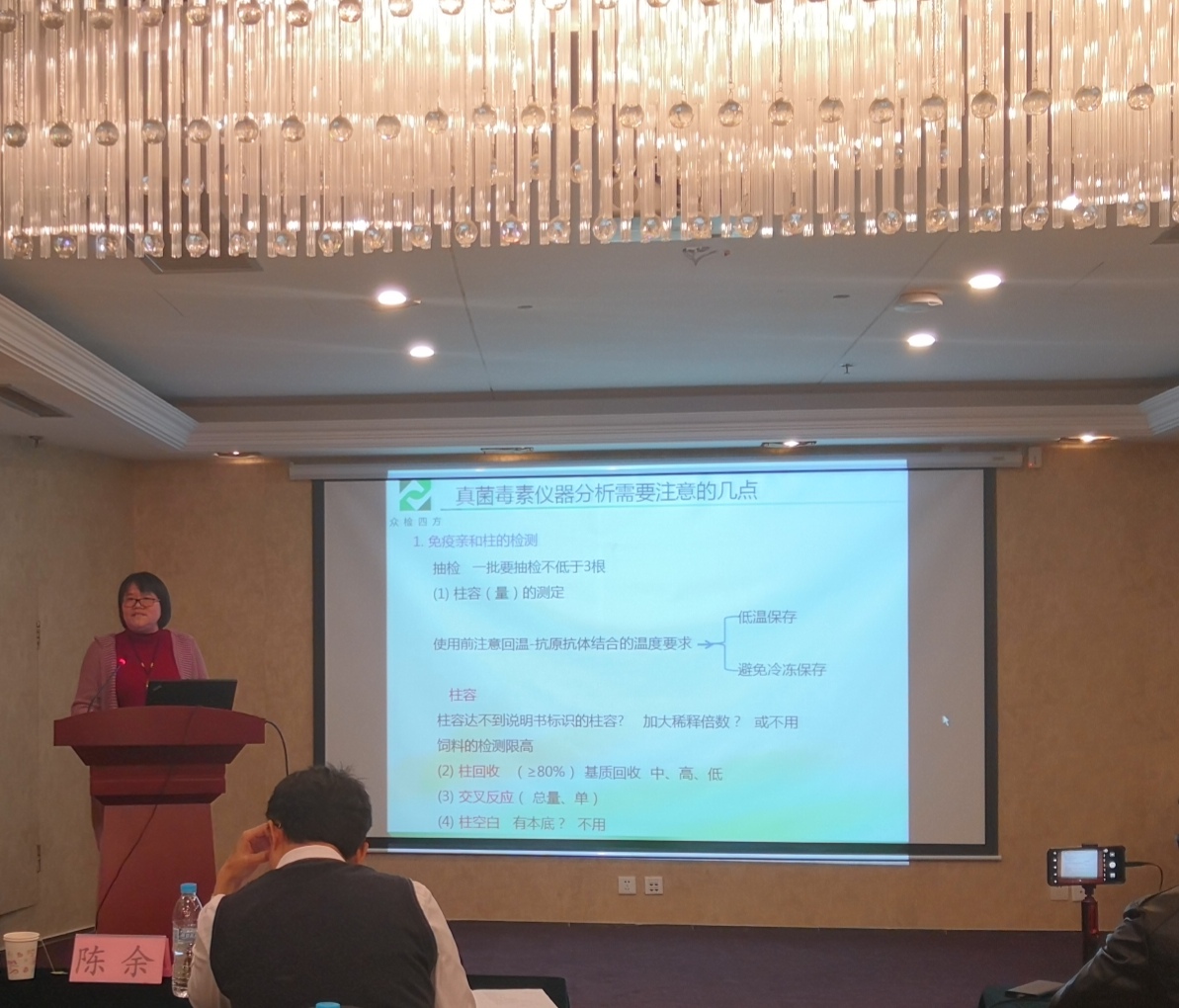 11月26日,2018年京津冀黑遼魯豫飼料質(zhì)量安全檢測(cè)技術(shù)交流會(huì)在天津舉辦。我司的王文珺博士在交流會(huì)上做了《飼料及其原料中真菌毒素污染檢測(cè)方法探究》的報(bào)告,向與會(huì)代表介紹了北京智云達(dá)的全資子公司眾檢四方在真菌毒素檢測(cè)的資質(zhì)、工作基礎(chǔ)和工作經(jīng)驗(yàn)。此外,王博士還向大家介紹了眾檢四方在畜禽糞便重金屬污染檢測(cè)方面做的領(lǐng)先性工作。畜禽糞污有害物質(zhì)分析檢測(cè)及控制是習(xí)近平總書(shū)記關(guān)心的重大生態(tài)環(huán)境工程。
