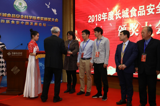 2019年4月22日,"2018年度長城食品安全科學(xué)技術(shù)獎頒獎大會暨第四屆食安中國發(fā)展論壇"在中國科技會堂隆重舉行,食品安全領(lǐng)域的院士、專家教授、技術(shù)骨干匯聚一堂,共迎食安盛事。長城食品安全科學(xué)技術(shù)獎是由國家科學(xué)技術(shù)獎勵辦備案審批、食品科學(xué)報發(fā)起和承辦的獎項,也是食品安全領(lǐng)域的重要和專門獎項,旨在鼓勵創(chuàng)新、推廣新技術(shù)和建立食品行業(yè)高新技術(shù)示范。