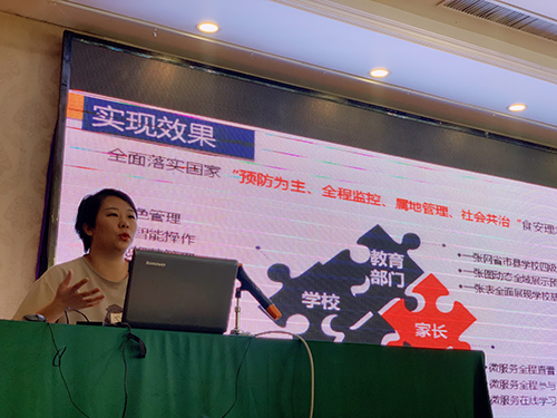 北京智云達資深產(chǎn)品經(jīng)理錢瑞,為各位參訓(xùn)學(xué)員分享了智云達在校園餐飲食品安全保障中的智能化解決方案,得到了省教育廳領(lǐng)導(dǎo)的認(rèn)可。智云達作為國內(nèi)領(lǐng)先的食品安全快檢產(chǎn)品、檢測服務(wù)以及信息化構(gòu)建的供應(yīng)商及服務(wù)商,為校園餐飲食品營養(yǎng)與安全提供保障,打造了集“食品溯源-明廚亮灶-快速檢測-校園餐飲營養(yǎng)與安全監(jiān)管-第三方檢測服務(wù)-食品安全保險”于一體的智能化系統(tǒng),可實現(xiàn)可視感知、節(jié)點預(yù)警、過程監(jiān)督、事后追溯的綜合保障。