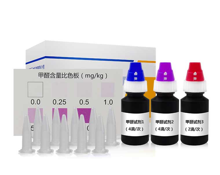 甲醛與顯色劑反應(yīng)生成紫色化合物,與比色卡進行顏色比對,得出甲醛含量。