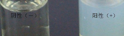 3min內(nèi),若上層出現(xiàn)黃白色渾濁,則可判定樣品中含有噻唑烷酮類物質(zhì),為陽(yáng)性(+);否則判為陰性(-)。
