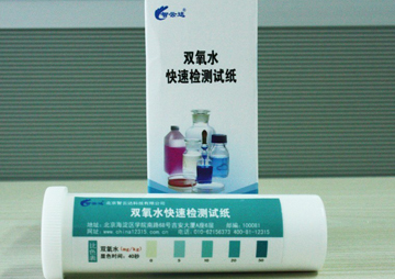 利用雙氧水與試紙上的藥劑發(fā)生顯色反應(yīng),試紙的顏色變化反應(yīng)出食品中雙氧水的含量。