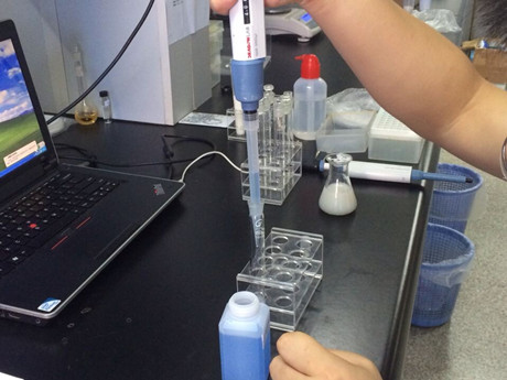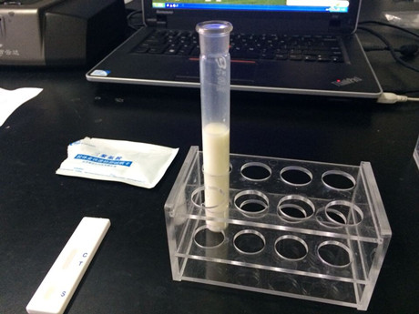 2、用干燥、潔凈的比色管或適當(dāng)容器盛放奶粉,用純凈水1:10稀釋(1份奶粉+10份純凈水),溶解后用于檢測。