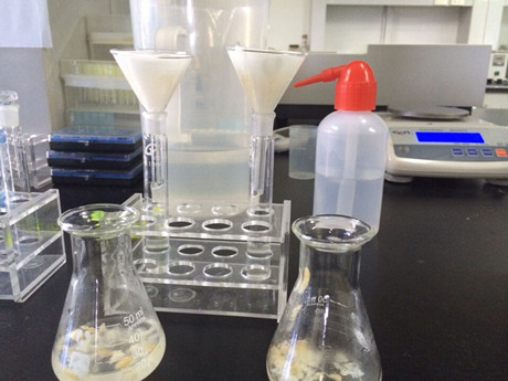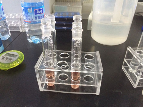 2、 加蒸餾水19mL,A溶液1mL,充分搖動(dòng),超聲5分鐘,靜置5分鐘,過(guò)濾,濾液備用。