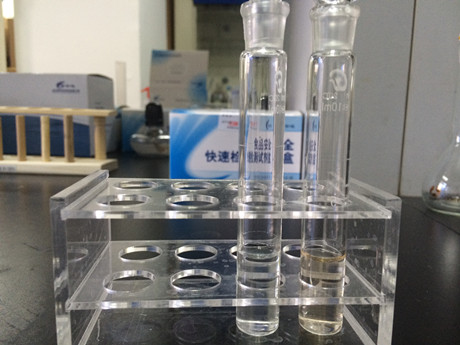4、倒入比色皿中,置于PCS多功能食品安全檢測(cè)儀中檢測(cè)。檢測(cè)結(jié)果:兩個(gè)樣品均未檢出雙氧水。