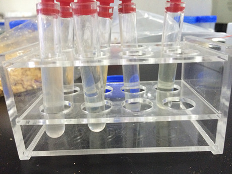 2、取兩個(gè)比色皿,分別為樣品組合對(duì)照組。在樣品管加入3ml樣品液,在對(duì)照管中加入3ml緩沖液,隨后分別加入20ul顯色劑和50ul酶試劑。蓋塞混勻靜置10min。搖勻后放置10min,加入20ul l底物搖勻