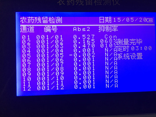 靜置時間結(jié)束后,立馬加入20ul底物并迅速轉(zhuǎn)移到農(nóng)殘檢測儀中進行檢測,通過3min檢測我們知道2號茶葉的酶抑制率超過50%,視為農(nóng)殘超標。