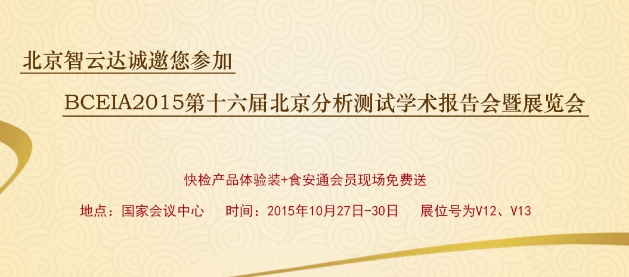 第十六屆北京分析測試學(xué)術(shù)報(bào)告會暨展覽會(BCEIA 2015)于2015年10月27日-30日在國家會議中心如期舉行。北京智云達(dá)科技有限公司受邀參展,展位號為:V12、V13,智云達(dá)誠邀您蒞臨參展。