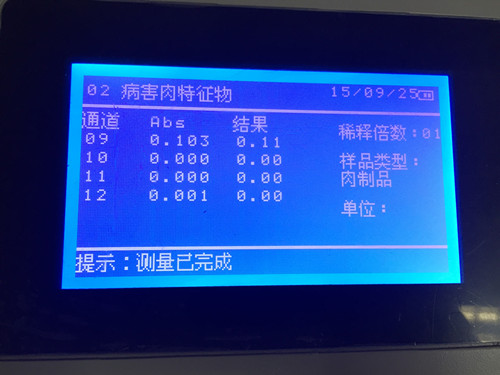 結(jié)果顯示樣品中POD活性值低于正常豬肉,疑似病害肉??焖贆z測只能作為初篩,建議送到第三方檢測機構(gòu)進行定量檢測。