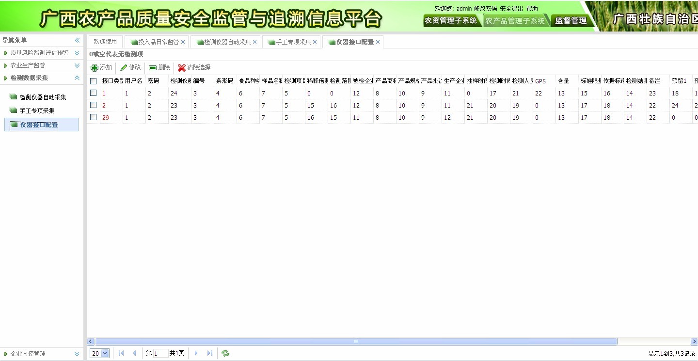 無需自動采集的檢測數(shù)據(jù)通過該版塊手動錄入采集結果。提供增刪改功能,便于操作。如圖3-2所示