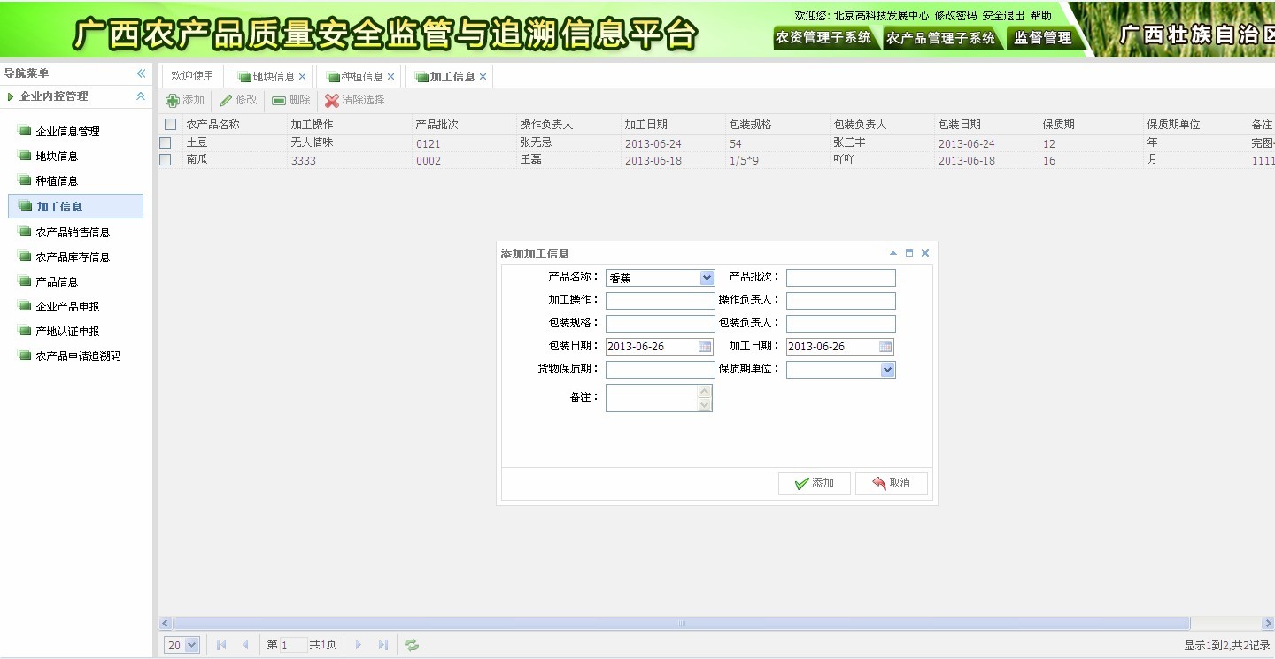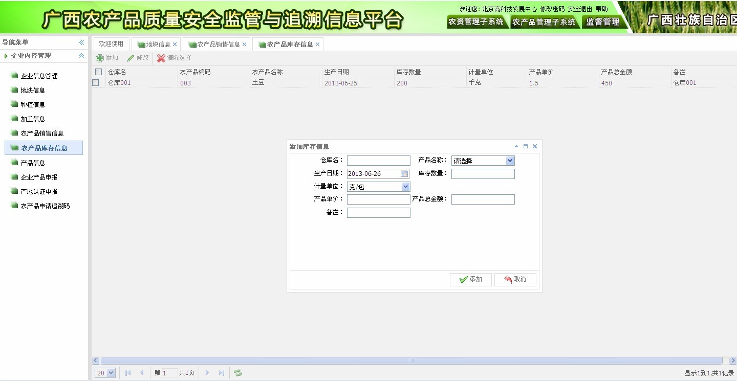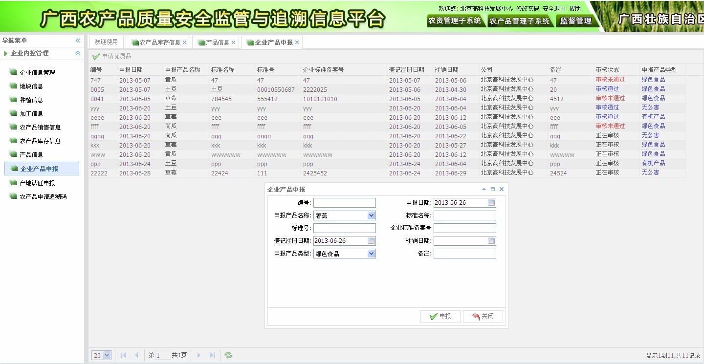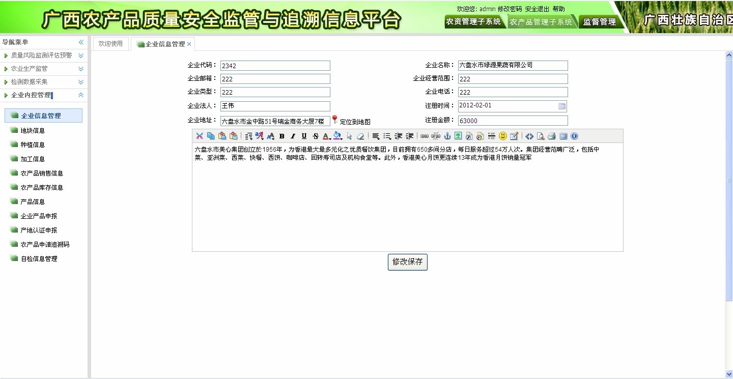 ? 企業(yè)信息管理:基本資質、產(chǎn)地環(huán)境、生產(chǎn)基地、管理制度等;